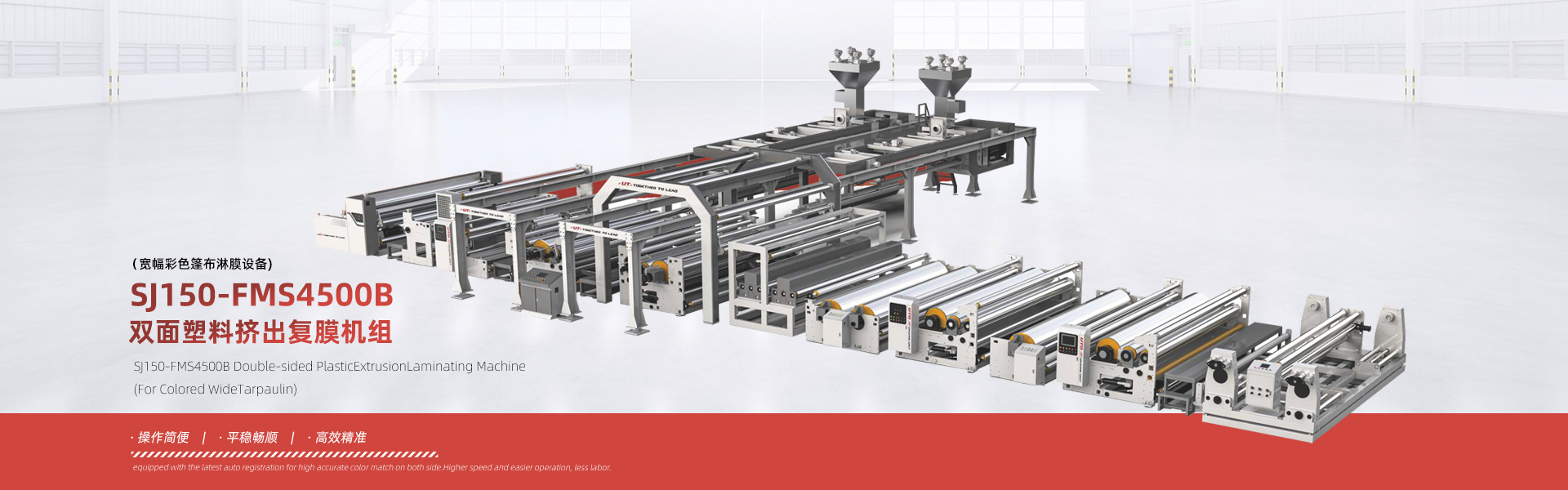 SJ110-FMS2600A雙面塑料擠出復(fù)膜機(jī)組功能:通過(guò)塑料擠出機(jī)對(duì)卷材表面進(jìn)行復(fù)膜或多種基材復(fù)合,以達(dá)到提高產(chǎn)品的抗拉強(qiáng)度和防潮性能的效果。 用途:廣泛應(yīng)用于化工冶金行業(yè)的化工袋、集裝袋,廣告燈箱布、防水材料、建筑材料等產(chǎn)品。 適用基材:PP和HDPE 、LDPE編織布、無(wú)紡布等。 ... -